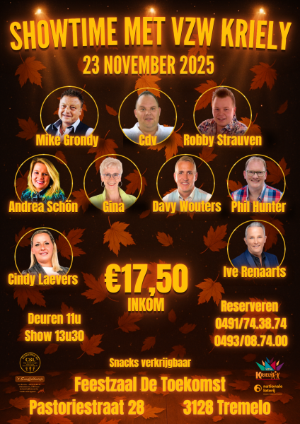 💳 Belangrijk: Shows met diner zijn pas gereserveerd na betaling op rekeningnummer BE95 9734 3809 3258 met vermelding van je naam + de artiest