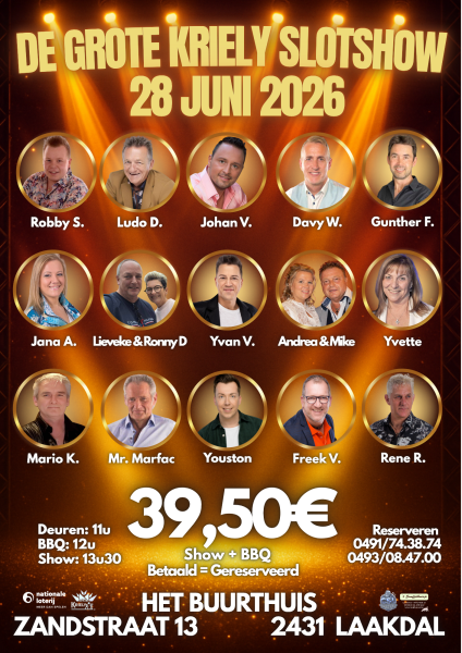 💳 Belangrijk: Shows met diner zijn pas gereserveerd na betaling ( rekeningnummer te bevragen) met vermelding van je naam + de artiest